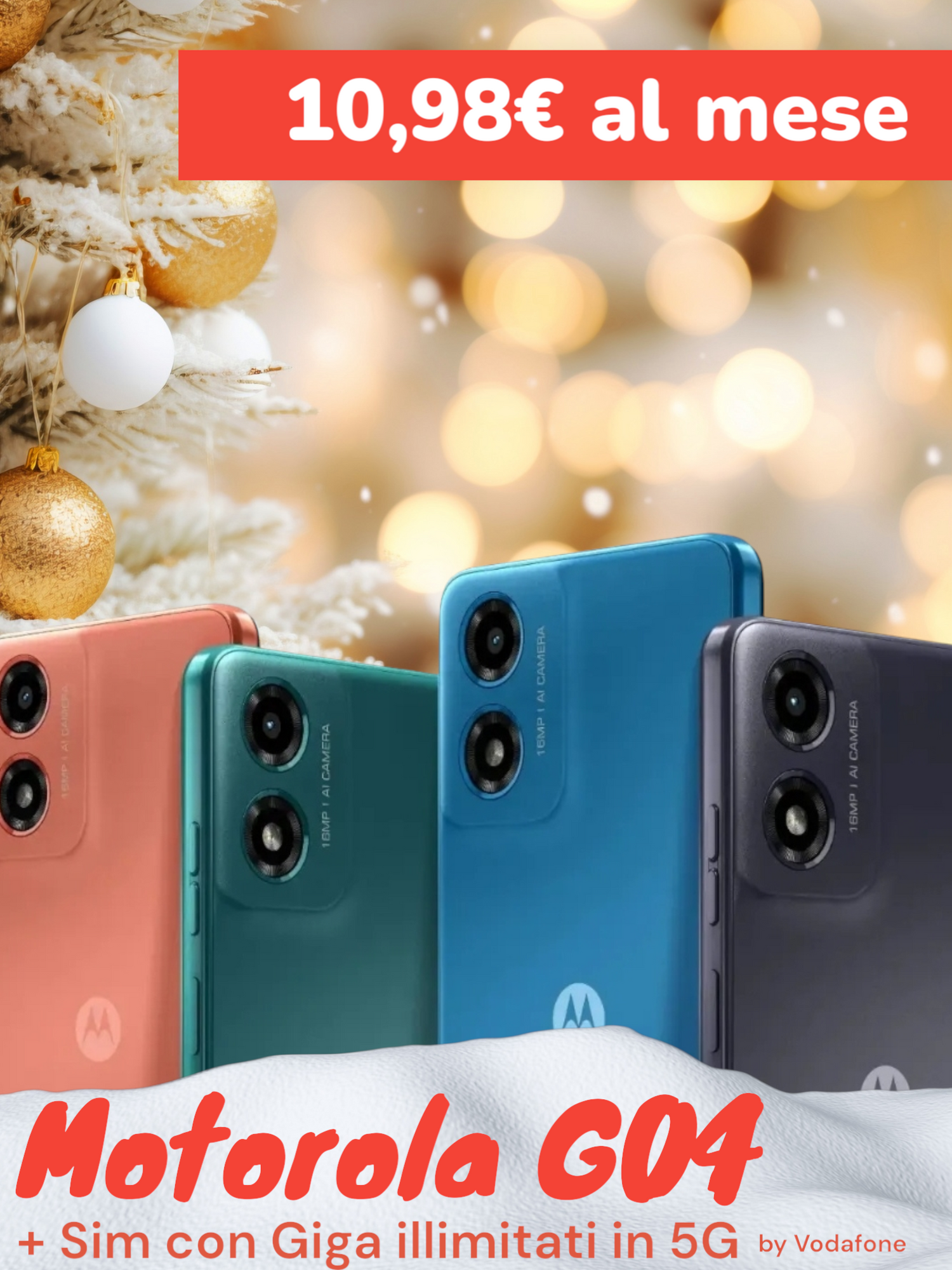 NB: il canone mensile 10,98€ si riferisce al costo dell'Offerta sim [di 9,99€ al mese] + il costo dello Smartphone Motorola G04 [di 0,99€ al mese x 24 mesi]