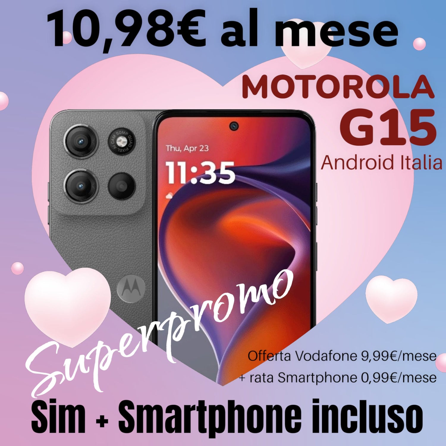 SIM + SMARTPHONE MOTOROLA G15 Android a 10,98€ al mese